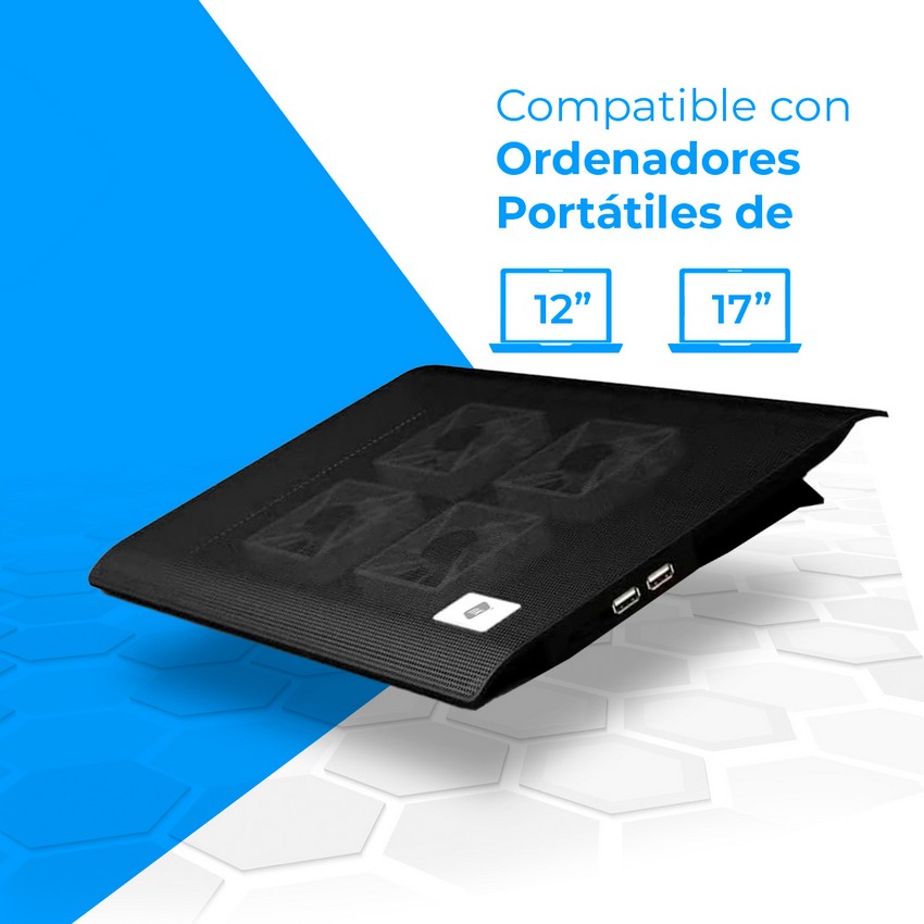 - BASE REFRIGERADORA: Con dos ventiladores silenciosos incorporados y control de intensidad incluído, mantén siempre refrigerada la base de tu portátil para optimizar su funcionamiento y alargar su vida.